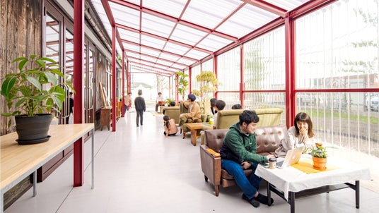同施設には、地域の人々がおもいおもいに時間をすごせるカフェ風のテラスや子どもたちがのびのび遊べる共用スペース、そしてビジネスの起点として機能するシェアオフィスやレンタルオフィスが設けられています。