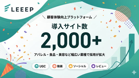 株式会社REGALI(本社:東京都渋谷区、代表取締役社長:稲田光一郎)が提供する顧客体験向上プラットフォーム「LEEEP(リープ)」は、2026年3月末時点で導入サイト数が2,000サイトを突破したことをお知らせいたします。アパレル・食品・美容・雑貨をはじめとする幅広い業種のEC事業者様にご採用いただき、2024年9月の1,000サイト突破からわずか約1年半で導入数を倍増いたしました。