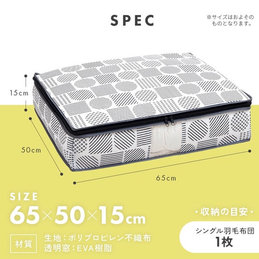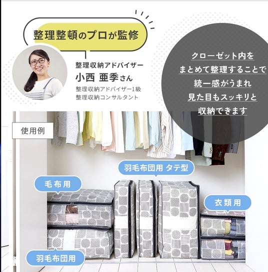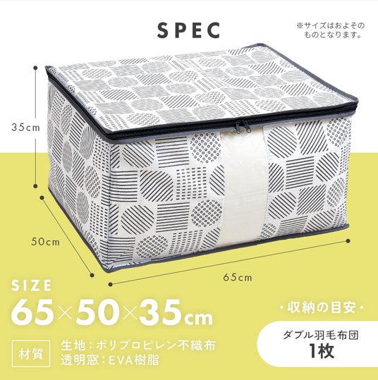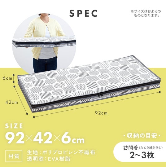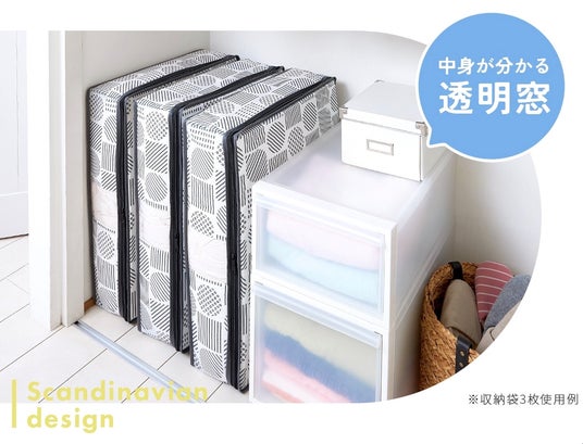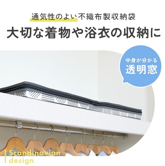 ホコリを防ぎ、おしゃれに収納。通気性のよい不織布製で、中身が分かる透明窓付き。大きく開くファスナーで出し入れしやすい。クローゼットのすき間に収納できます。