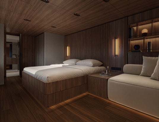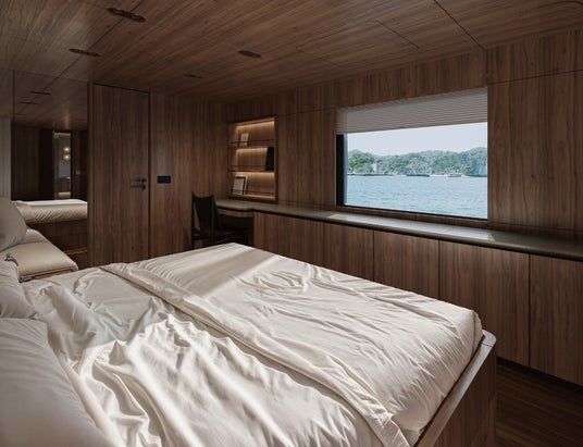 全長23.8m・最大42名が乗船可能な船体には、ジャグジー付きのデッキ含む屋内外に広がる220平米のゆとりある開放的なサロン、10名様までご着席いただける円卓ダイニング、全室シャワー付きの4つのベッドルームを完備。さらに、船と一体的につながる海上プール「SEAPOOL」なども利用可能。陸上の別荘では味わえない、”海に浮かぶ究極のヴィラ”として海の上ならではの体験をご提供します。