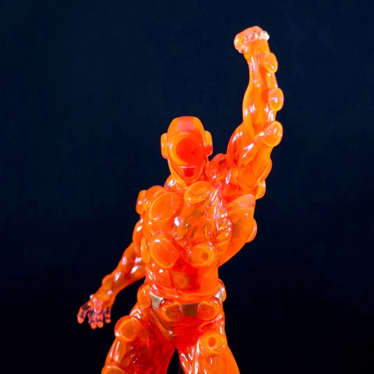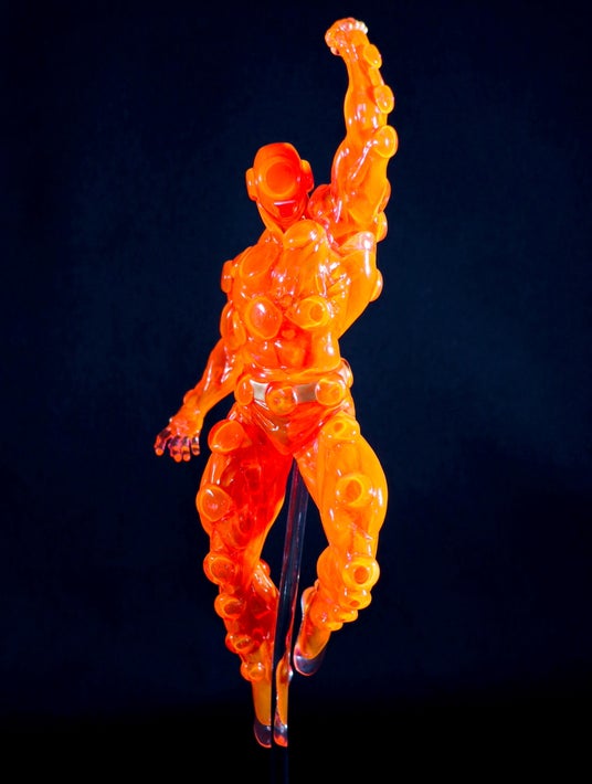 ペインマン体表を構成する無数のエアバッグを再現したクリアボディに、絶妙な透明感が残るよう蛍光色の塗料を流し込む調整の難しい技法で、ジャンクマンの猛攻を受け、身体が熱で状態を見事に再現!