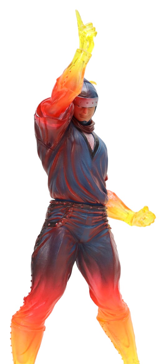 炎の燃えるリング上に立ち、技を発動するイメージをもとに、技を発動させる手足はクリア成形を活かした燃えるようなグラデーションで彩色。