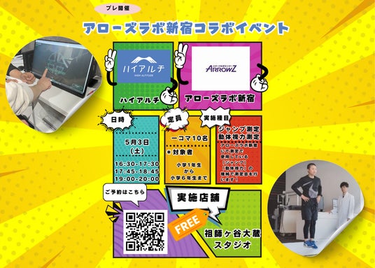 低酸素環境でのフィットネススタジオを展開する「ハイアルチ」と、子どもの運動能力を数値で“見える化”する「アローズラボ新宿」が、2025年5月3日(土)にコラボイベントを初開催、今後も継続予定です。
