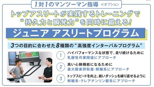 ジャンプ力や動体視力などを科学的に測定し、「低酸素トレーニング」でより効率的な成長を後押しします。