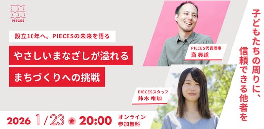 認定NPO法人PIECES(東京都)は、認定NPO法人の資格を再取得したことを受け、子どもたちの周りに「信頼できる他者」を増やすというこれまでの実践をさらに前進させるため、寄付キャンペーンを実施しています。あわせて、これまでの歩みとこれからの挑戦を共有するイベントを2026年1月に開催します。