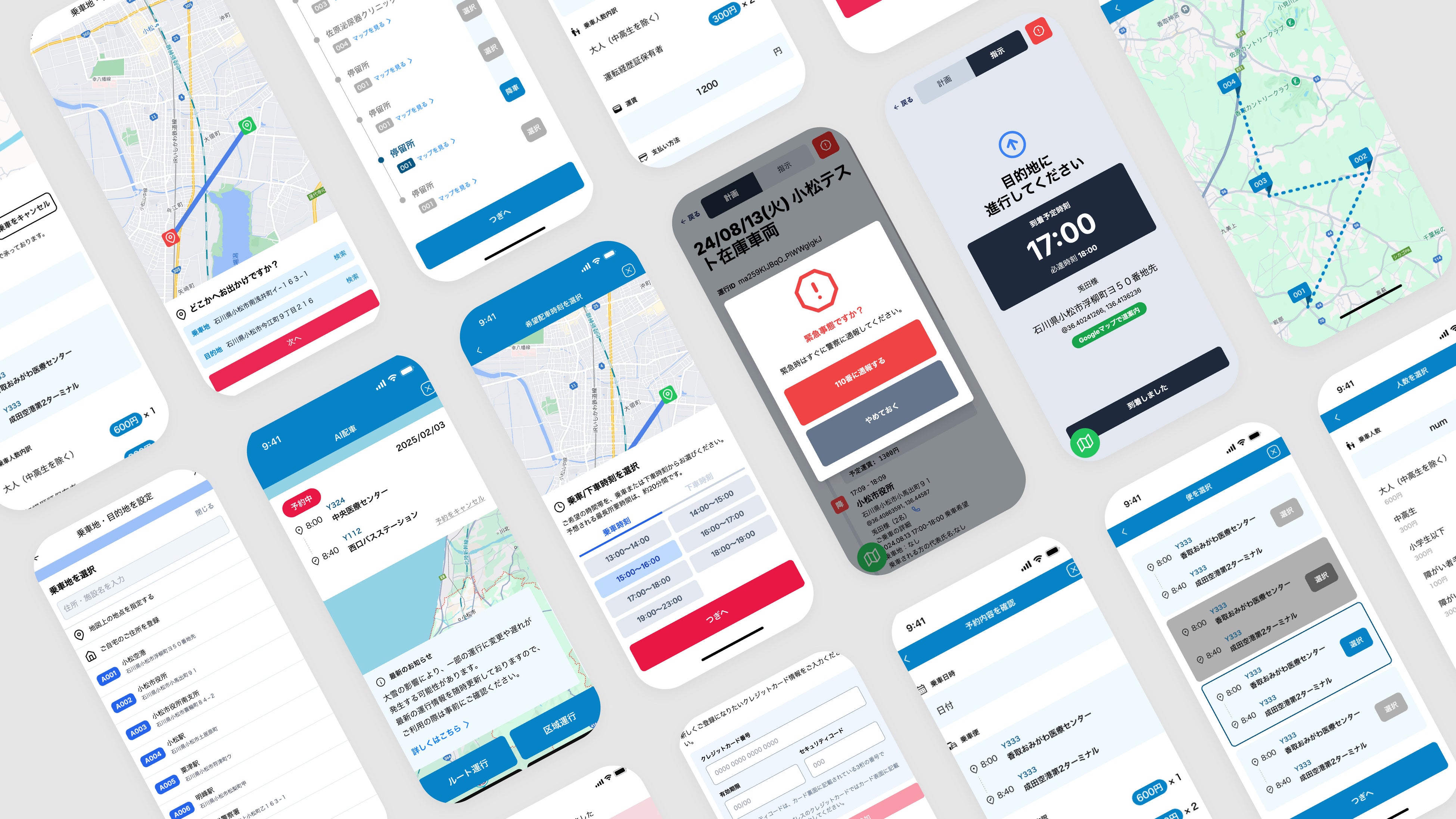 実証では、市民ドライバー4名が自家用車で運行し、当社が配車システム提供および運行支援を担当。路線バスやデマンド型交通との重複を回避し、タクシーやバスとは異なる新しい移動の選択肢として位置づけます。また、市内にあるコンビニやスーパーマーケット、病院、飲食店など250か所以上の施設をあらかじめシステムに登録しておき、利用者はプルダウンで乗降地を選択可能。初めての方でも迷わず予約・乗車できる体験を提供します。