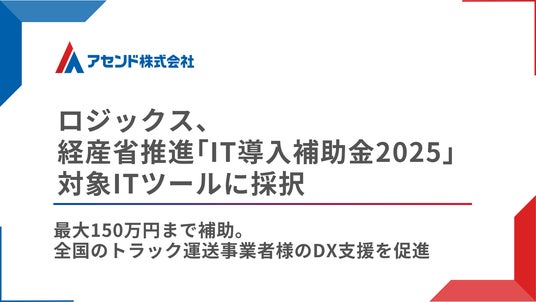 物流DXを推進するアセンド株式会社(本社:東京都新宿区、代表取締役:日下瑞貴、以下「当社」)は、経済産業省が推進する「IT導入補助金2025」の対象ITツールに、「ロジックス」が正式に採択されたことをお知らせいたします。