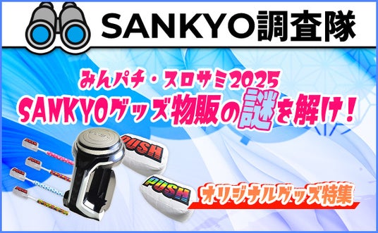 株式会社SANKYO(本社:東京都渋谷区 代表取締役社長 小倉 敏男)は、2025年8月6日(水)にSANKYOが運営する公式ウェブメディアコンテンツ「SANKYO調査隊」にて『みんパチ・スロサミ2025 SANKYOグッズ物販の謎を解け!オリジナルグッズ特集記事』を公開したことをお知らせいたします。