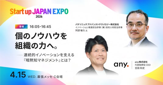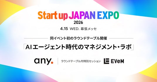 any株式会社(所在地:東京都千代田区、代表取締役CEO:吉田和史、以下:any)は、2026年4月15日(水)、16日(木)に開催されるEight(Sansan株式会社)主催の「Startup JAPAN EXPO 2026」にて、Startup JAPANとの共同企画による初のラウンドテーブルを開催します。