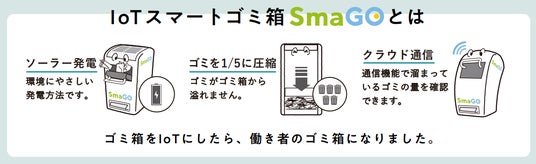 株式会社フォーステックが展開する、地球環境に配慮し開発されたIoTスマートゴミ箱です。当ゴミ箱は、ソーラーパネルによる太陽光発電・蓄電機能を備えており、溜まったゴミを約1/5に自動圧縮します。また、通信機能によりゴミの集積状況がPCやスマホから把握できるため不要な回収を避けることもでき、ゴミ回収業務の大幅な効率化が可能です。加えて各面1平米ほどあるSmaGOの側面は自由にデザイン可能で、分別の啓蒙や、協賛を募ることで運用コストを削減することもできます。これらの機能を持つSmaGOは、持続可能な美しい街づくりの実現を推進しています。