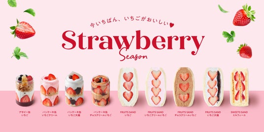 フルーツサンドをはじめ、スイーツサンド、パンケーキ缶、アサイー缶など、それぞれ異なる形で、いちごの味わいを楽しめるラインアップです。