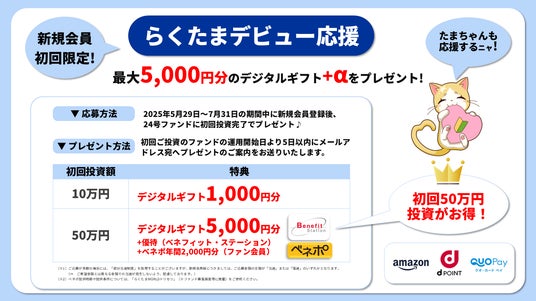 キャンペーンへのご参加をご検討されている方は、ぜひお早めに「24号ファンド」の募集期間(7月31日まで)内でのお申し込みをご検討いただけますと幸いです。