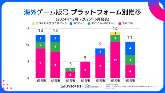 LIVEOPSIS調査|中国における海外ゲーム版号 プラットフォーム別発行数推移(2024年12月~2025年6月発表)