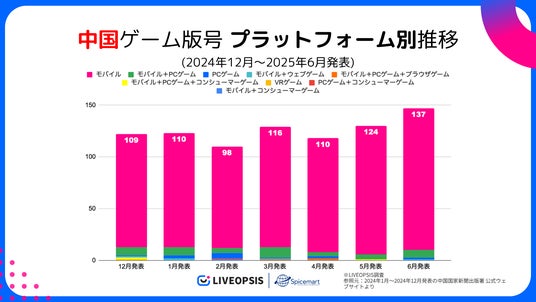 LIVEOPSIS調査|中国ゲーム版号 プラットフォーム別発行数推移(2024年12月~2025年6月発表)