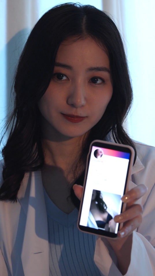 私は、水沢さんが演じる密先生に憧れを抱き、近づくために同じ学校の教師になります。気づけばその人になりたいという気持ちが抑えられず、密先生に化けた裏アカで欲求を満たそうとするも歯止めが効かないところまで行ってしまいます。今回、今まで演じたことのないキャラクターと、題材でした。好奇心とともに祈ちゃんという子に寄り添えたらなと、私としてもまた新たな感情に出会えた作品になりました。一度はあの人になりたい、なったらああしたい、そんな感情が芽生えてただひたすら追い続けてきた子、密先生との関係。その行方をぜひ縦型ドラマならではのテンポ感と画角で楽しんで見て頂けたら嬉しいです。