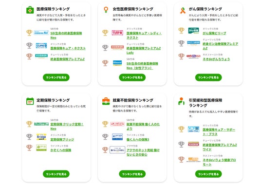 ※ランキングは各保険商品の優劣や推奨を示すものではなく、特定期間の申込件数、資料請求件数、及びアクセス数に基づいて作成したものです。