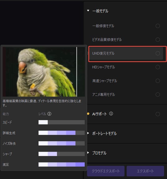 UHD復元モデルは高解像度映像向けに設計されており、720P以上の動画に特化しています。