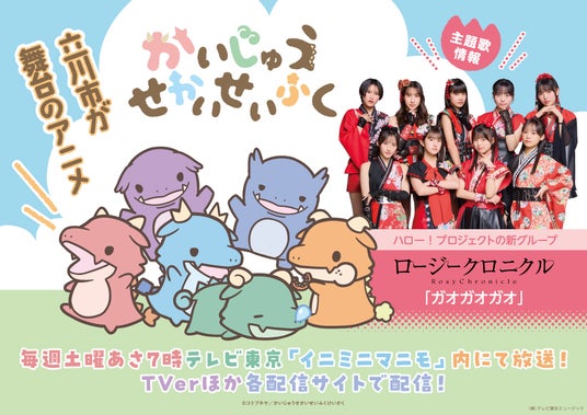 2025年4月5日(土)より、テレビ東京にて毎週土曜あさ7時からイニミニマニモ内で放送を開始する『かいじゅうせかいせいふく』(株式会社壽屋(本社:東京都立川市、代表取締役社長:清水一行))と、本作品で主題歌を担当するハロー!プロジェクトの新グループ『ロージークロニクル』(所属アップフロントプロモーション)のビジュアルが描かれた広告が、東京都立川市が舞台となる本作品に合わせてJR立川駅構内に掲出、伊勢丹立川店の『ISETAN TACHIKAWA VISION』、アレアレア1の『アレアビジョン』では作品のプロモーションビデオが流れます。