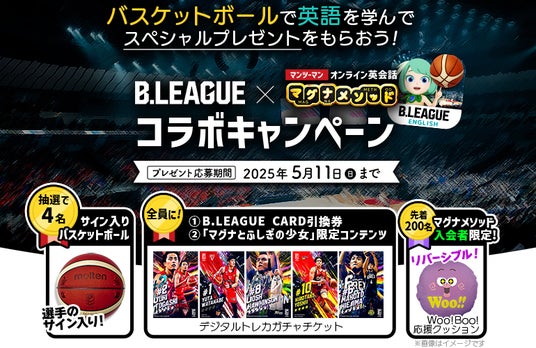 マンツーマン・オンライン英会話スクール「マグナメソッド」の教材であるAI英語学習アプリに、B.LEAGUEコラボコンテンツが登場します。