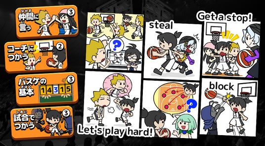 バスケットボールファンが楽しく英語が学べる、特別に開発したバスケットボールで使える英単語・フレーズ学習コンテンツや、B.LEAGUEとコラボしたAIキャラとの英会話コーナー等がアプリ内に順次登場します。