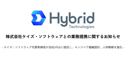 - ケイズ・ソフトウェア代表取締役が当社VPoEに就任し、エンジニア組織設計、人材戦略を強化 -