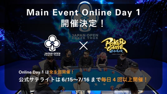 ジャパンオープンポーカーツアー株式会社(東京都新宿区、代表: 亀井 翼、以下ジャパンオープンポーカーツアー)が開催する日本最大規模のポーカーイベント「JOPT 2025 Tokyo #02」では、株式会社Skyfall(東京都港区 代表取締役社長:長谷川 智一、以下Skyfall)が運営するバトロワ式オンラインポーカーゲーム『ポーカーチェイス』にて、Main Eventの公式サテライトとOnline Day 1を開催することが決定しました。