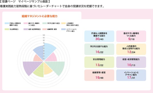 看護マネジメントラダーの内容を学習できる標準プログラムは、日本看護協会の認定看護管理者研修プログラムがあるものの、受け入れ数の制限などにより、受講できる看護管理者数は限られており、多くの看護管理者は個々の自己教育に依存している場合が極めて多いです。そのため、S-QUE では看護管理実践能力の各習熟段階に相応した知識と技術を自施設内で系統的に学習できる e ラーニングによる学習プログラムを開発いたしました。