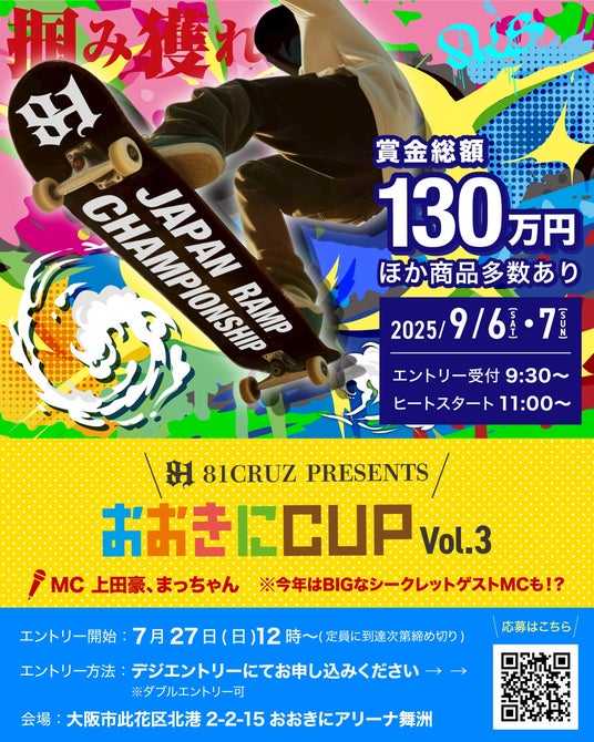 賞金総額130万円!プロもアマチュアも大阪・舞洲に集まれ!7月27日(日)12:00よりエントリー受付を開始いたします。