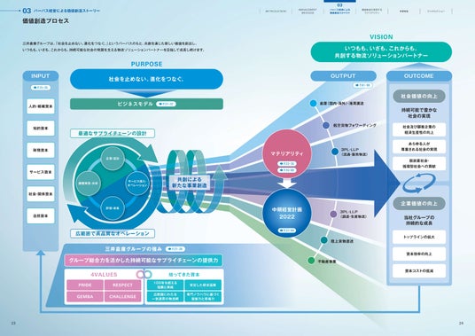 当社グループの経営活動への理解を深めていただくために、財務・非財務情報を統合し、将来の持続的な成長に向けた取り組みを記載しています。今回の発行では、グループ理念を起点に、当社の強みである経営資本をどのようにビジネスモデルの深化に繋げ、中長期的な価値を創出していくか、その関係性を示しています。