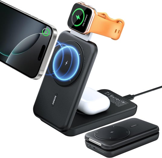 三つ折り式・スタンド型・Apple Watch対応 magesafe対応 5000mAh ワイヤレス充電器 D17