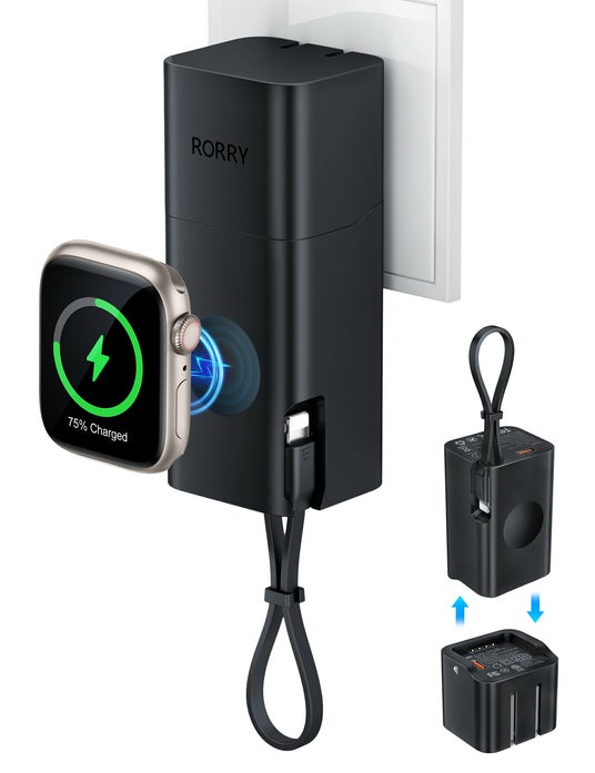 RORRY モバイルバッテリー apple watch 急速充電 5000mAh 2本ケーブル内蔵(D2-5000)