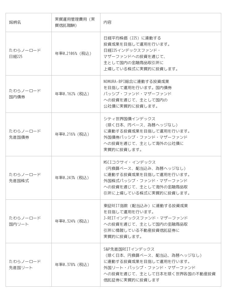 ■今回、新たに取り扱う投資信託6本の内容と信託報酬は以下の通りです。