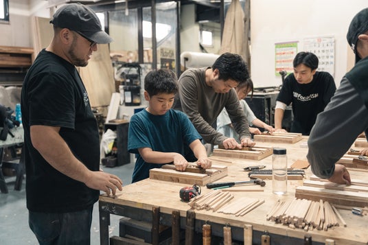 「工場であそぶ日」は、普段家具などのインテリアアイテムを製造している友安製作所の本社工場やオフィスを一般開放し、来場者とともにものづくりを楽しむ体験イベントです。毎月テーマを変え、工場という場所ならではの「ここでしかできない体験」を提供します。工場の雰囲気を感じながら、大人も子どもも夢中になれる時間をお届けします。