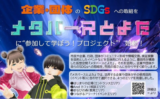 豊田市は、市民などのSDGs達成に向けた取組を促進するとともに、2025年10月に本市で開催する「2025国際首長フォーラム」に向けた機運醸成を目的としたSDGsアクションキャンペーン「ミライにいいこと、はじめよう。」における「学ぶ」取組の一環として、仮想空間「メタバースとよた」を活用したSDGs連続講座(全2回)を、民間企業と連携して開催します。