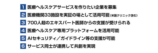 ドクターズは、国内外あわせて33の医療機関を本プロジェクトにおける実証・検証の場として提供し、実際の医療現場でAIサービスを磨き上げていきます。これらの医療機関には日本国内のみならず、アメリカのクリニックも含まれており、グローバル展開を見据えた医療ヘルスケアAIの社会実装が可能です。リアルな医療現場での検証を前提とすることで、「使われるAI」「続くAI」「広がるAI」を生み出していきます。