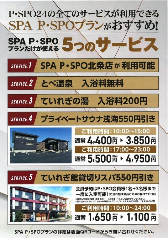 スパピースポプランのご案内内容