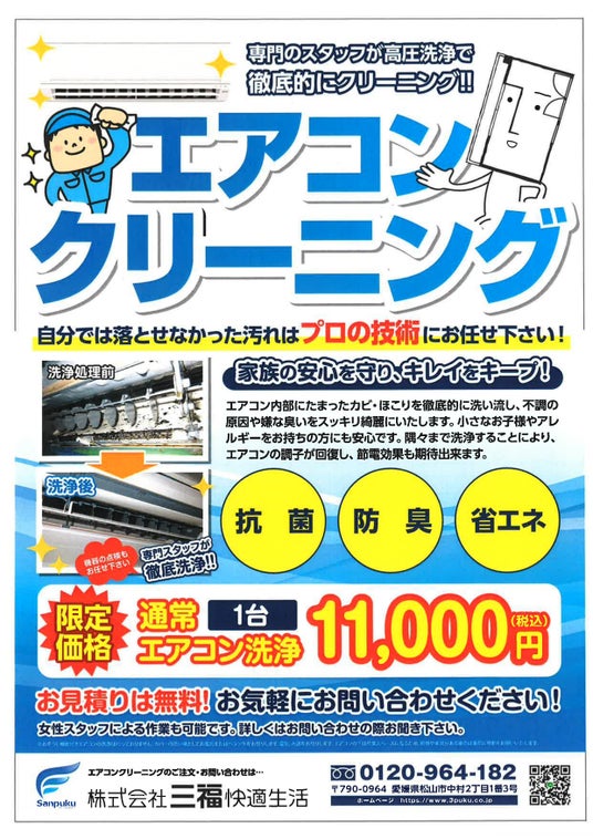 三福快適生活のエアコンクリーニングご案内内容
