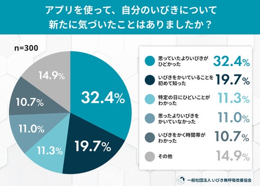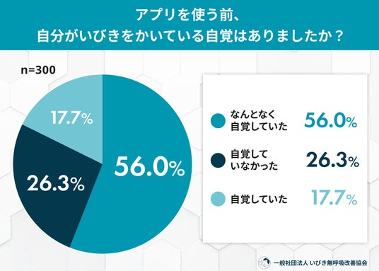 - 約4人に1人(26.3%)が、アプリを使うまで自分がいびきをかいている「自覚がなかった」