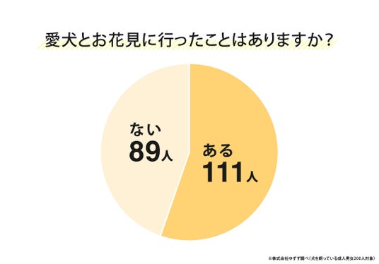 犬を飼っている成人男女200人に「愛犬とお花見に行ったことはありますか」と尋ねたところ、「ある」と回答したのは111人(55.50%)でした。