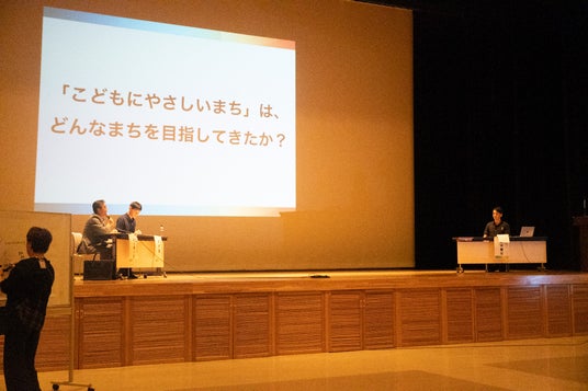 次の講演「子どもにやさしいまちの公教育とは?」では、日本初のイエナプランスクール・茂来学園大日向小学校教諭の岩本歩氏、ルネサンス大阪高等学校教諭で100円たこやき店長の川人佑太氏、MIMIGURIの木村彰宏氏、「ケテぶれ」学習法を提唱した葛原祥太氏の4名が登壇。ユニセフが推進する「子どもにやさしいまちづくり事業(CFCI)」を実践する安平町の取り組みをそれぞれの教育という視点からディスカッションしました。モデレーターは井内聖教育長。