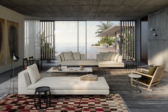 メタルフレームがクッションを支える建築的な美しさはそのままに、この新作と同時に追加された新サイズのローテーブルによりモジュールの柔軟性が向上。住宅からプロフェッショナル空間まで調和する、時代を超えて輝き続けるアイコンです。