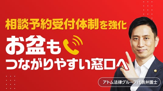 このような背景を踏まえ、お盆期間中に事故に遭われた方々が時間帯を問わずいつでも安心して専門家にご相談いただけるよう、アトム法律事務所ではいわゆるお盆期間であっても、相談予約受付体制を強化することになりました。