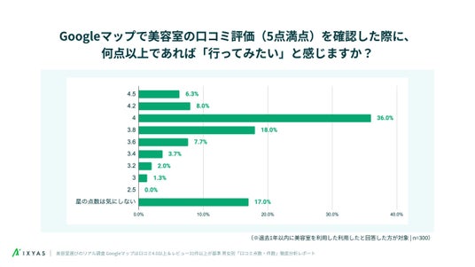 ・美容室選びの際、50.3%の人が Googleマップの口コミ評価「4.0点以上」 を重視している