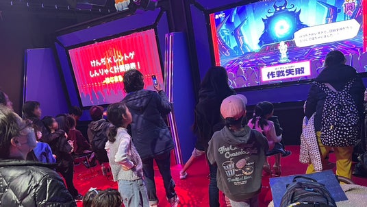 会場となったTBS赤坂BLITZスタジオには、3日間を通じて多くの親子連れが訪れ、終始にぎわいを見せました。「黒渦騎士団からの挑戦状」ブースでは、AIキャラクター「EMO-エモ-」との対話に夢中になる子どもたちの姿が見られ、自分の言葉でAIキャラクターに話しかけ、予想外の反応に驚いたり笑ったりする子どもたちの表情が印象的でした。