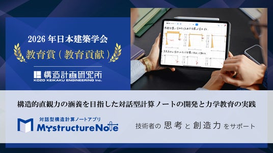 株式会社構造計画研究所(本社:東京都中野区、代表取締役社長:湯口達夫)が提供する対話型構造計算ノートアプリ「MystructureNote」を活用した教育実践が、2026年「日本建築学会教育賞(教育貢献)」を受賞しました。