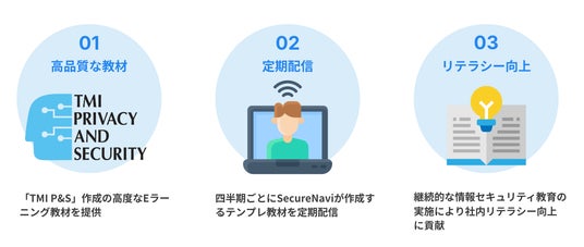 ・SecureNaviが作成する情報セキュリティ教材テンプレートの活用(年間4回、各3~4種類の新規教材追加を予定)が可能になります。