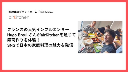 ZAZA株式会社(代表取締役:永津 豪、所在地:愛知県名古屋市)が運営する、旅行者と地元の料理体験をつなぐプラットフォーム「airKitchen(エアキッチン)」(https://airkitchen.me/)は、フランスの旅行系インフルエンサーでソーシャルメディア総フォロワー数が1.6万人を超える Hugo Breuil(@hugo_breuil)さん とコラボレーションし、東京で開催された寿司クラスの魅力を発信いただきました。