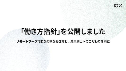 株式会社10X(本社:東京都中央区、代表取締役:矢本真丈、以下10X)は、社員一人ひとりとチームがより良い成果を創出できる環境を実現するため、「働き方指針」を公開しました。本指針では、「個々やチームが正しい成果を、より早く、長期間にわたり継続できる方法」を「良い働き方」と定義し、10Xでの働き方を検討する上での上段の思想として設定しています。