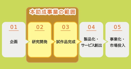 本事業では、製品・サービスを生み出すために、試作品の設計、製作、試験評価を行うことを「研究開発」と位置づけています。