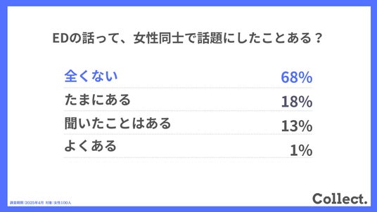 - EDの話題は女性同士でもまだタブー感があり、「全くない」との回答が約7割